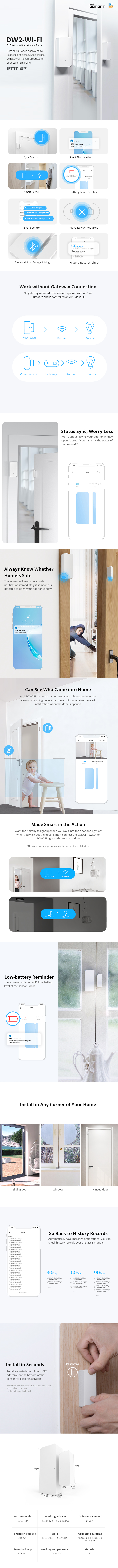 - Безжичен Wi-Fi сензор за врати и прозорци.