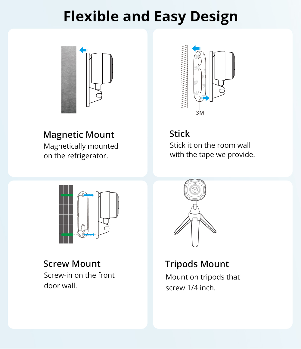 - Различни начини за закрепване - магнит за метални плоскости, включена в пакета лепенка 3М, с винтове към стена или просто стояща.