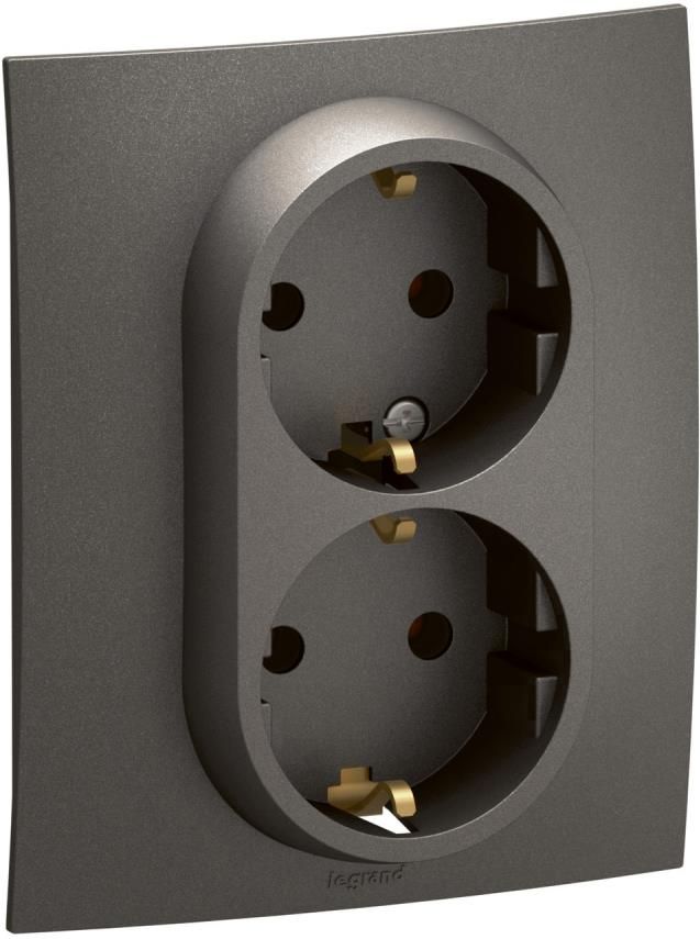 Контакт Шуко двоен с детска защита 16A Legrand Niloe New NP3130MG - Сив